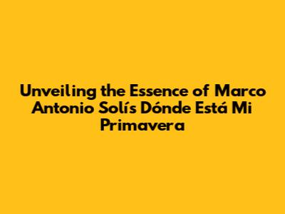 Unveiling The Essence Of Marco Antonio Solís' Dónde Está Mi Primavera