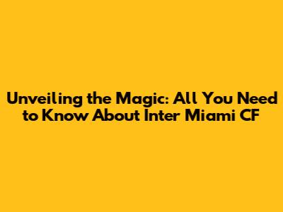 Unveiling The Magic: All You Need To Know About Inter Miami CF