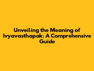 Unveiling The Meaning Of Ivyavasthapak: A Comprehensive Guide