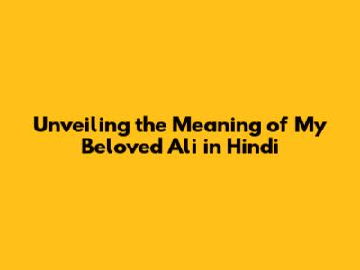 Unveiling The Meaning Of 'My Beloved Ali' In Hindi