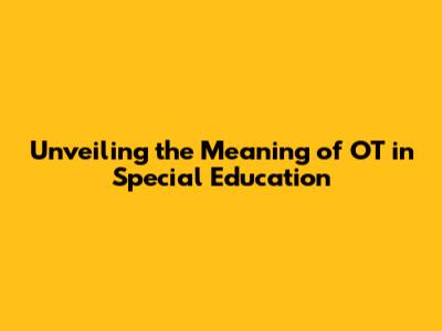 Unveiling The Meaning Of OT In Special Education