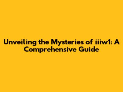 Unveiling The Mysteries Of Iiiw1: A Comprehensive Guide