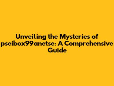 Unveiling The Mysteries Of Pseibox99anetse: A Comprehensive Guide