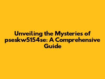 Unveiling The Mysteries Of Pseskw5154se: A Comprehensive Guide