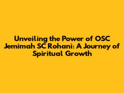 Unveiling The Power Of OSC Jemimah SC Rohani: A Journey Of Spiritual Growth