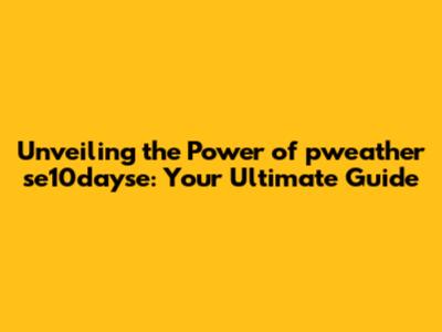 Unveiling The Power Of Pweather Se10dayse: Your Ultimate Guide