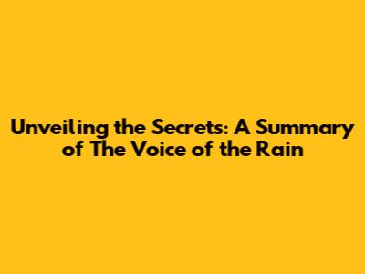 Unveiling The Secrets: A Summary Of 'The Voice Of The Rain'
