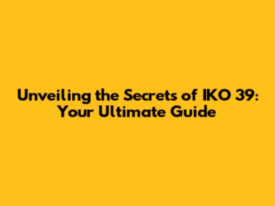 Unveiling The Secrets Of IKO 39: Your Ultimate Guide