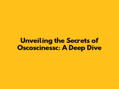 Unveiling The Secrets Of Oscoscinessc: A Deep Dive