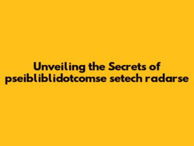 Unveiling The Secrets Of Pseibliblidotcomse Setech Radarse