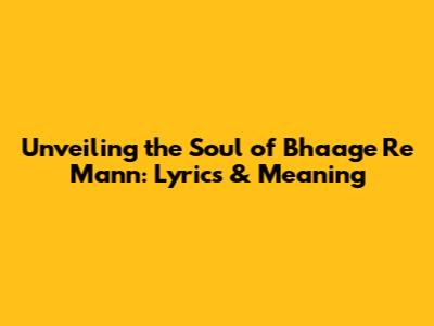 Unveiling The Soul Of 'Bhaage Re Mann': Lyrics & Meaning