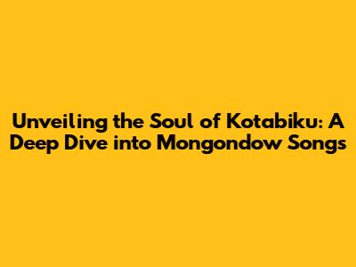 Unveiling The Soul Of Kotabiku: A Deep Dive Into Mongondow Songs