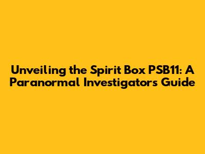 Unveiling The Spirit Box PSB11: A Paranormal Investigator's Guide