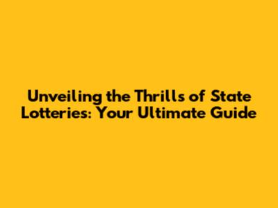 Unveiling The Thrills Of State Lotteries: Your Ultimate Guide