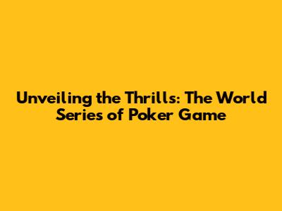 Unveiling The Thrills: The World Series Of Poker Game
