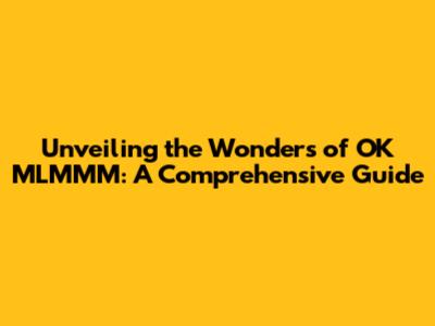 Unveiling The Wonders Of OK MLMMM: A Comprehensive Guide