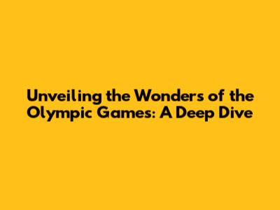 Unveiling The Wonders Of The Olympic Games: A Deep Dive