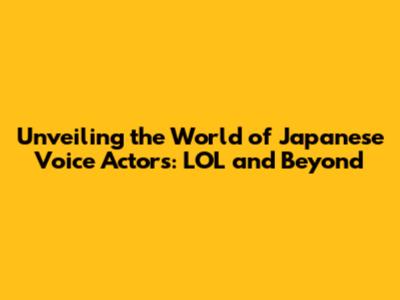 Unveiling The World Of Japanese Voice Actors: LOL And Beyond