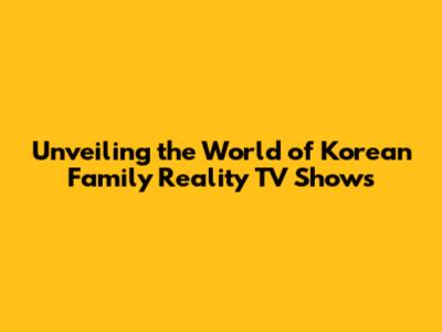 Unveiling The World Of Korean Family Reality TV Shows