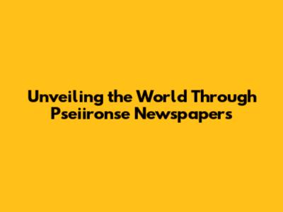 Unveiling The World Through Pseiironse Newspapers