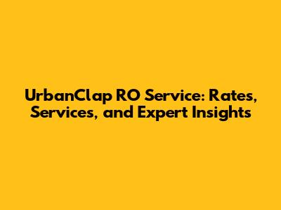 UrbanClap RO Service: Rates, Services, And Expert Insights