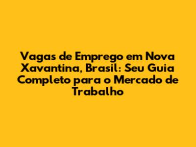 Vagas De Emprego Em Nova Xavantina, Brasil: Guia Completo