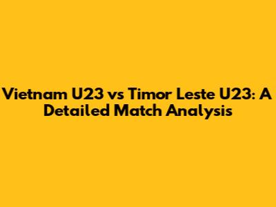 Vietnam U23 Vs Timor Leste U23: Match Analysis & Predictions