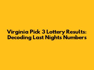 Hey everyone! Ever wondered what were the Pick 3 numbers last night in Virginia? You're in the right place! We're diving deep into the Virginia Lottery's Pick 3 game, giving you the lowdown on the winning numbers from last night's draw. Whether you're a seasoned player or just curious, this is your go-to guide for everything Pick 3 in the Old Dominion. Let's get started, shall we?