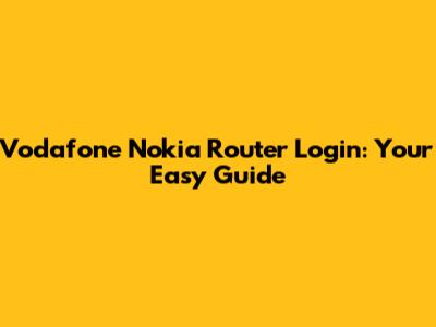 Vodafone Nokia Router Login: A Simple Guide
