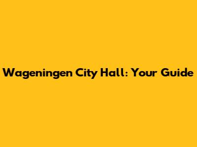Wageningen City Hall: Your Guide