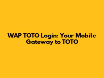 WAP TOTO Login: Your Mobile Gateway To TOTO