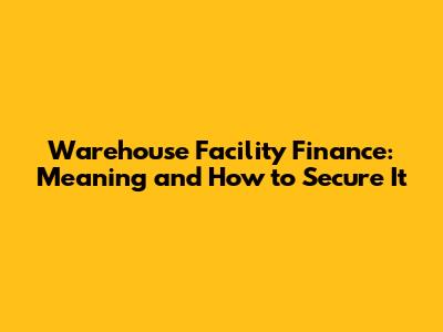 Warehouse Facility Finance: Meaning And How To Secure It
