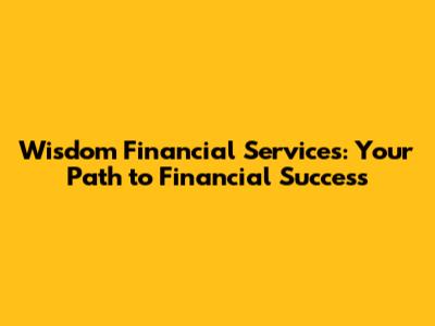 Wisdom Financial Services: Your Path To Financial Success