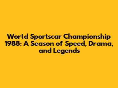 WSC 1988: A Season Of Speed, Drama, And Legends
