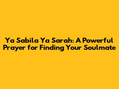 Ya Sabila Ya Sarah: Prayer For Finding A Soulmate