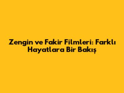 Zengin Ve Fakir Filmleri: Farklı Hayatlara Bir Bakış