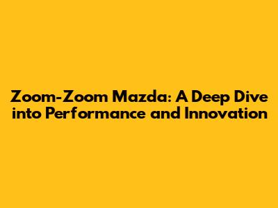 Zoom-Zoom Mazda: A Deep Dive Into Performance And Innovation